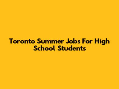 Toronto Summer Jobs For High School Students