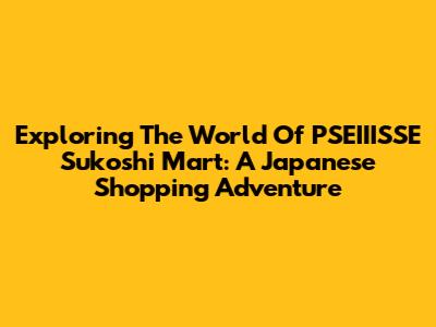Exploring The World Of PSEIIISSE Sukoshi Mart: A Japanese Shopping Adventure