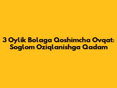 3 oylik bolaga qo'shimcha ovqat berishga o'tishning aniq muddati har bir bola uchun individualdir. Odatda, pediatrlar 6 oylikdan boshlab qo'shimcha ovqat berishni tavsiya etadilar. Biroq, ba'zi bolalar, masalan, sun'iy ovqatlanadigan yoki tez rivojlanayotgan bolalar, 4-5 oylikdan boshlab qo'shimcha ovqatga ehtiyoj sezishi mumkin. 3 oylik bolaga qo'shimcha ovqat berish masalasini muhokama qilishdan oldin, bolaning ba'zi tayyorlik belgilari borligiga ishonch hosil qilish kerak. Bu belgilar quyidagilarni o'z ichiga olishi mumkin: