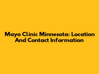 Mayo Clinic Minnesota: Location And Contact Information