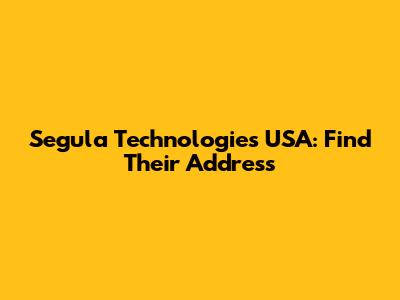 Segula Technologies USA: Find Their Address