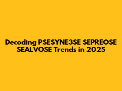 Okay, guys, let's dive into something that might sound like complete gibberish at first glance: PSESYNE3SE SEPREOSE SEALVOSE. Now, I know what you're thinking – what on earth is that? Well, in the ever-evolving world of trends, keywords like these can pop up and leave us scratching our heads. This article aims to break down what “PSESYNE3SE SEPREOSE SEALVOSE” might signify, especially as we look ahead to 2025. Think of it as decoding a secret message from the future! We'll explore potential meanings, analyze why such a term might gain traction, and discuss the broader implications for various industries. So buckle up, because we're about to embark on a journey into the weird and wonderful world of trend forecasting. We will try to dissect this intriguing string of characters and make sense of it all. Is it a new technology? A fashion statement? A social movement? Let's find out together and unravel the mystery behind PSESYNE3SE SEPREOSE SEALVOSE! Understanding these cryptic terms could be the key to staying ahead of the curve.