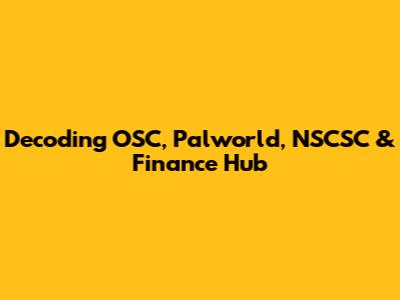 Decoding OSC, Palworld, NSCSC & Finance Hub