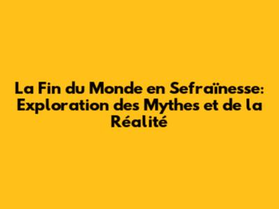 La Fin du Monde en Sefraïnesse : Mythe ou Réalité ?