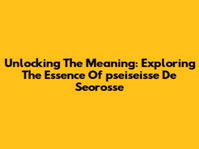 Unlocking The Meaning: Exploring The Essence Of 'pseiseisse De Seorosse'