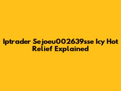 Iptrader Sejoeu002639sse Icy Hot Relief Explained