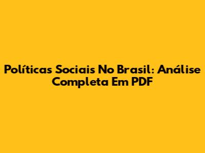Políticas Sociais No Brasil: Análise Completa Em PDF