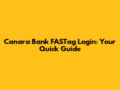 Canara Bank FASTag Login: Your Quick Guide