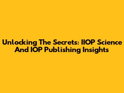 Unlocking The Secrets: IIOP Science And IOP Publishing Insights