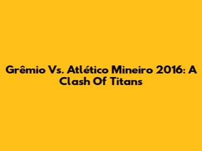 Grêmio Vs. Atlético Mineiro 2016: A Clash Of Titans