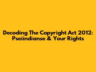Decoding The Copyright Act 2012: Pseiindianse & Your Rights