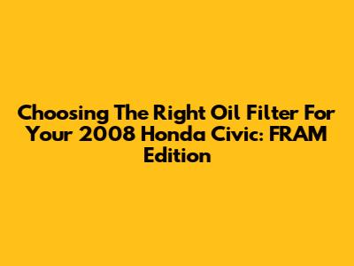 Choosing The Right Oil Filter For Your 2008 Honda Civic: FRAM Edition