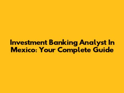 Investment Banking Analyst In Mexico: Your Complete Guide