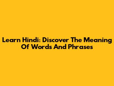 Learn Hindi: Discover The Meaning Of Words And Phrases