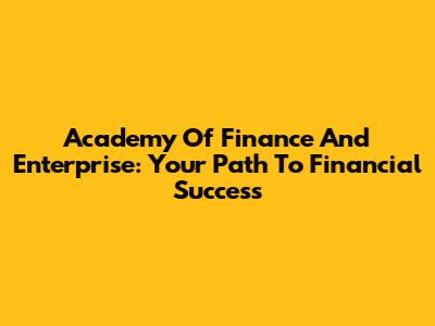 Academy Of Finance And Enterprise: Your Path To Financial Success