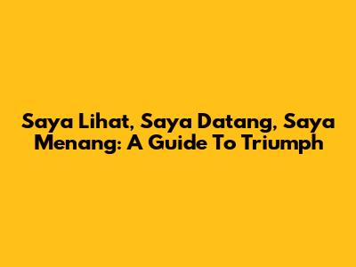 Saya Lihat, Saya Datang, Saya Menang: A Guide To Triumph