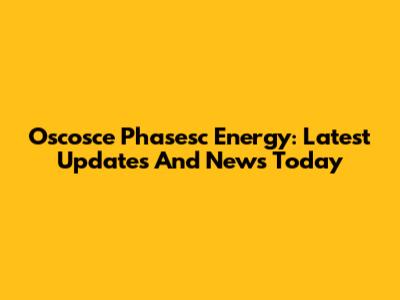 Oscosce Phasesc Energy: Latest Updates And News Today