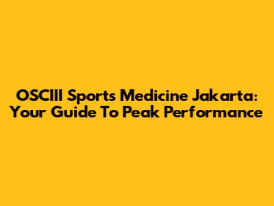 OSCIII Sports Medicine Jakarta: Your Guide To Peak Performance