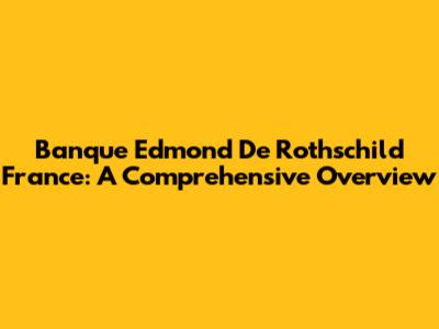 Banque Edmond De Rothschild France: A Comprehensive Overview