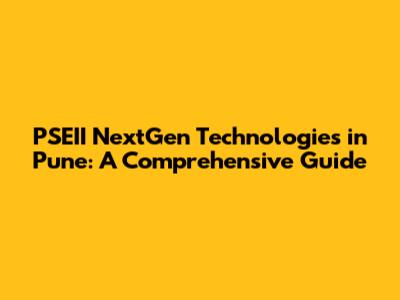 The Future of PSEII NextGen Technologies in Pune