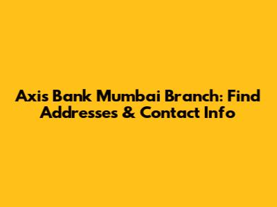 Axis Bank Mumbai Branch: Find Addresses & Contact Info