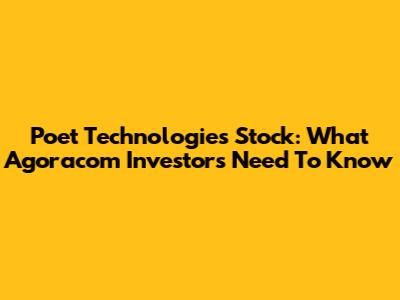 Poet Technologies Stock: What Agoracom Investors Need To Know