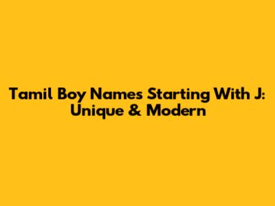 Tamil Boy Names Starting With J: Unique & Modern