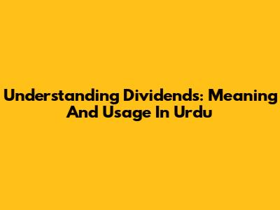 Understanding Dividends: Meaning And Usage In Urdu