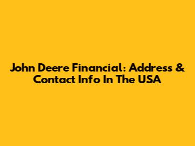 John Deere Financial: Address & Contact Info In The USA