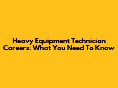 Heavy Equipment Technician Careers: What You Need To Know