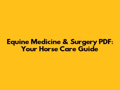 Equine Medicine & Surgery PDF: Your Horse Care Guide
