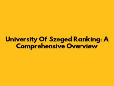University Of Szeged Ranking: A Comprehensive Overview