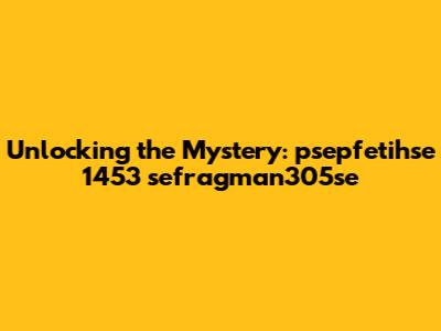 Alright, guys, let's dive into this intriguing topic: psepfetihse 1453 sefragman305se. Now, I know what you're thinking – what on earth is that? Well, it appears to be a unique identifier, possibly a code or a reference to something specific. Without more context, it's tough to pinpoint exactly what it refers to, but we can explore some possibilities and potential meanings behind this mysterious string.